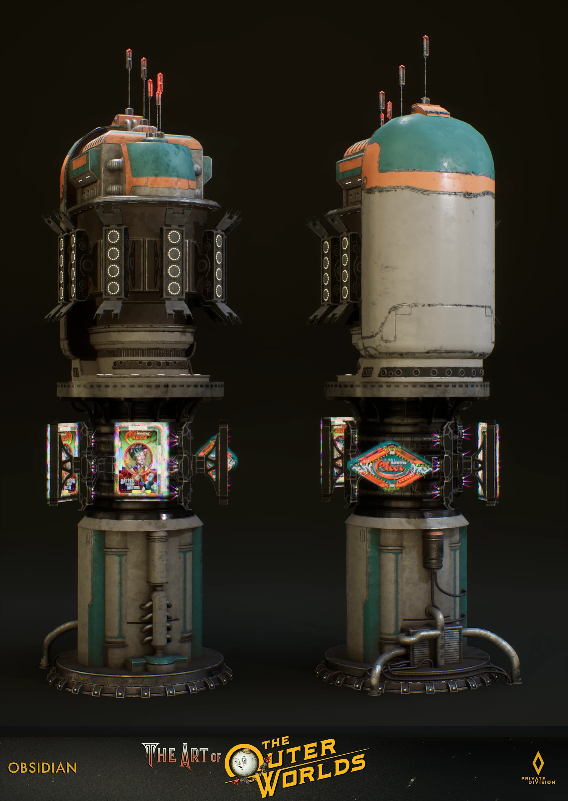 This is the communication tower from The Outer Worlds. I was responsible for the block out, high poly model, source texture baking, texturing, and shader set up on this hero prop in Unreal 5. The tower was designed modularly, as each level was designed to to be split and used independently. Many parts of this model can be spotted in various points of interest in the game. Shots rendered in Unreal 5 and composited in Photoshop.