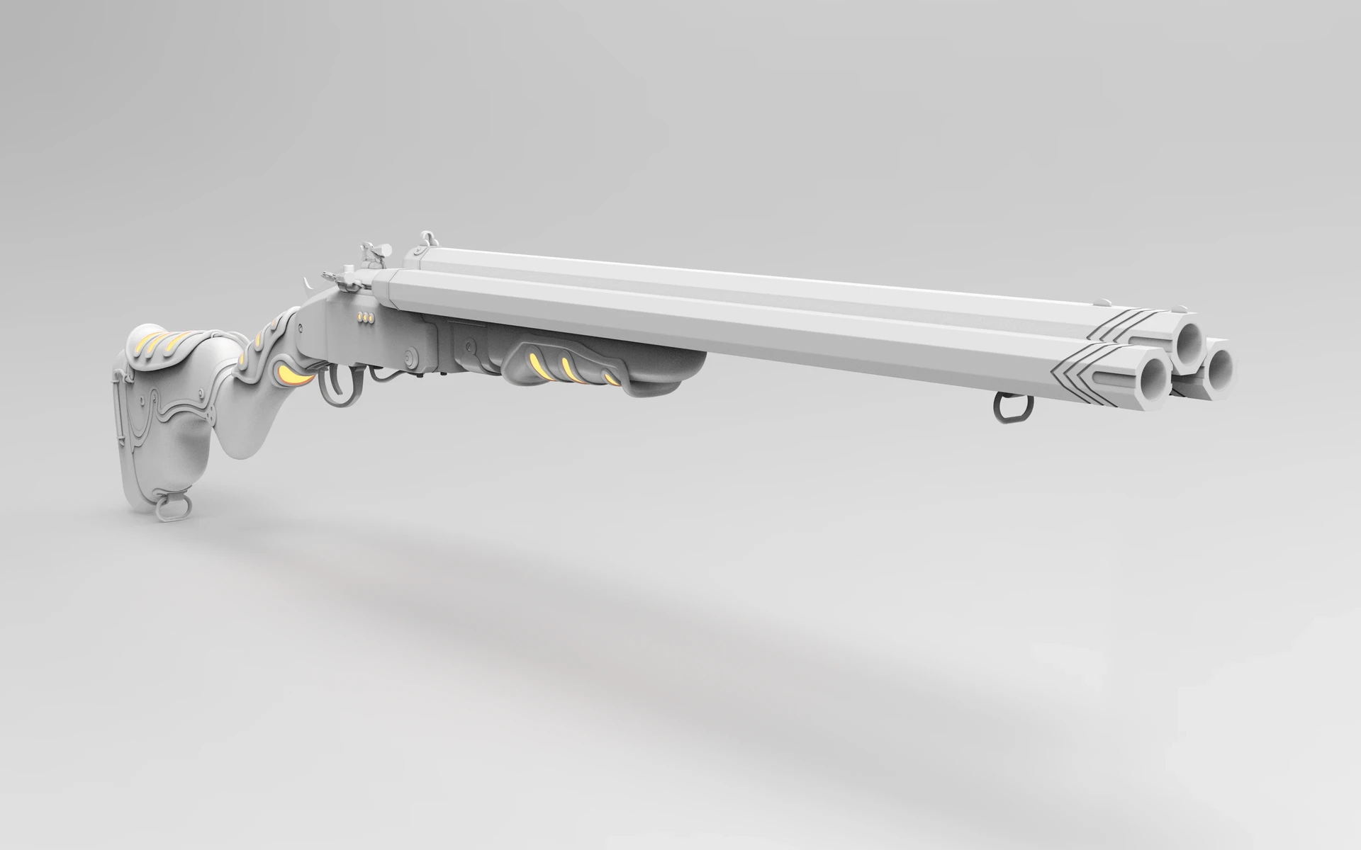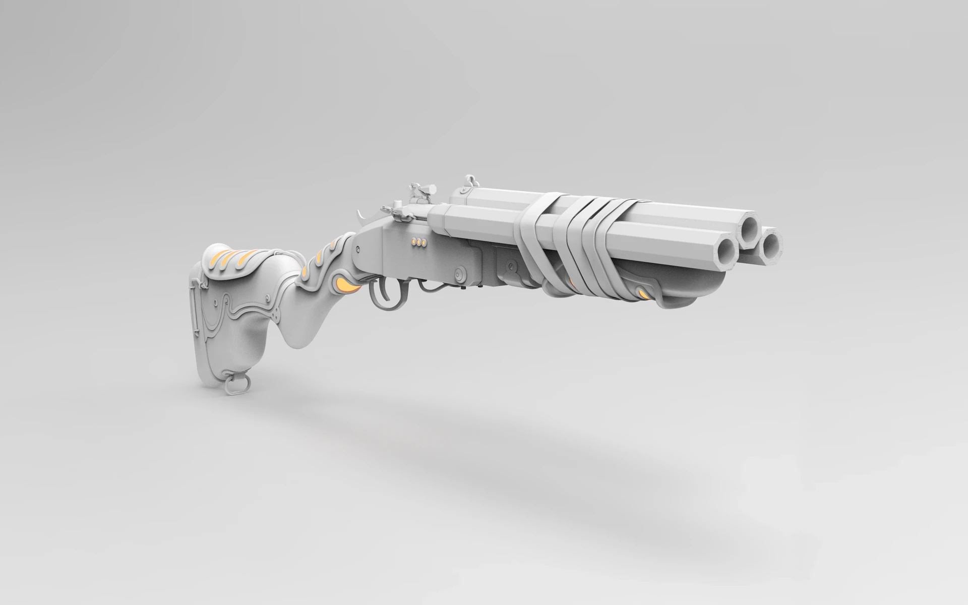 This is the Triple Barrel Shotgun along with the barrel mods for The Outer Worlds 2. I was responsible for the block out, high poly model, source texture baking, texturing, and shader set up on this character in Unreal 5. Shot rendered in Unreal 5 and composited in Photoshop.